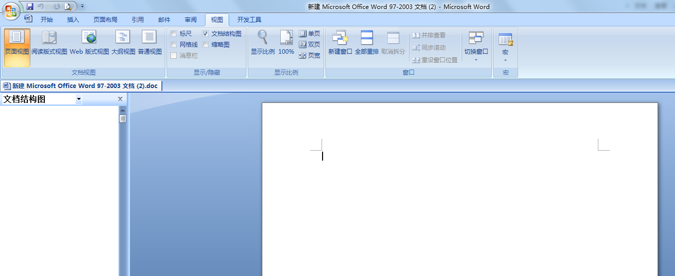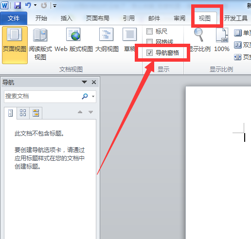打开word文档,选择视图选项卡,选中文档结构图复选框即可,如图所示。