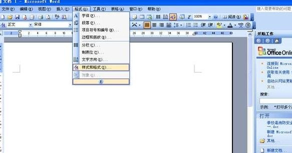 步骤一:打开word界面,单击“格式”菜单下的“样式和格式”选项,打开“样式和格式”任务窗口。如下图: