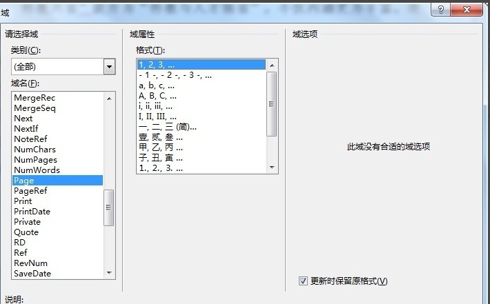 5第五步:找到文档部件下面的域命令,出现如下图所示内容。在域名中找到page命令,然后按确认,就会发现第字和页字之间出现当前页数了。