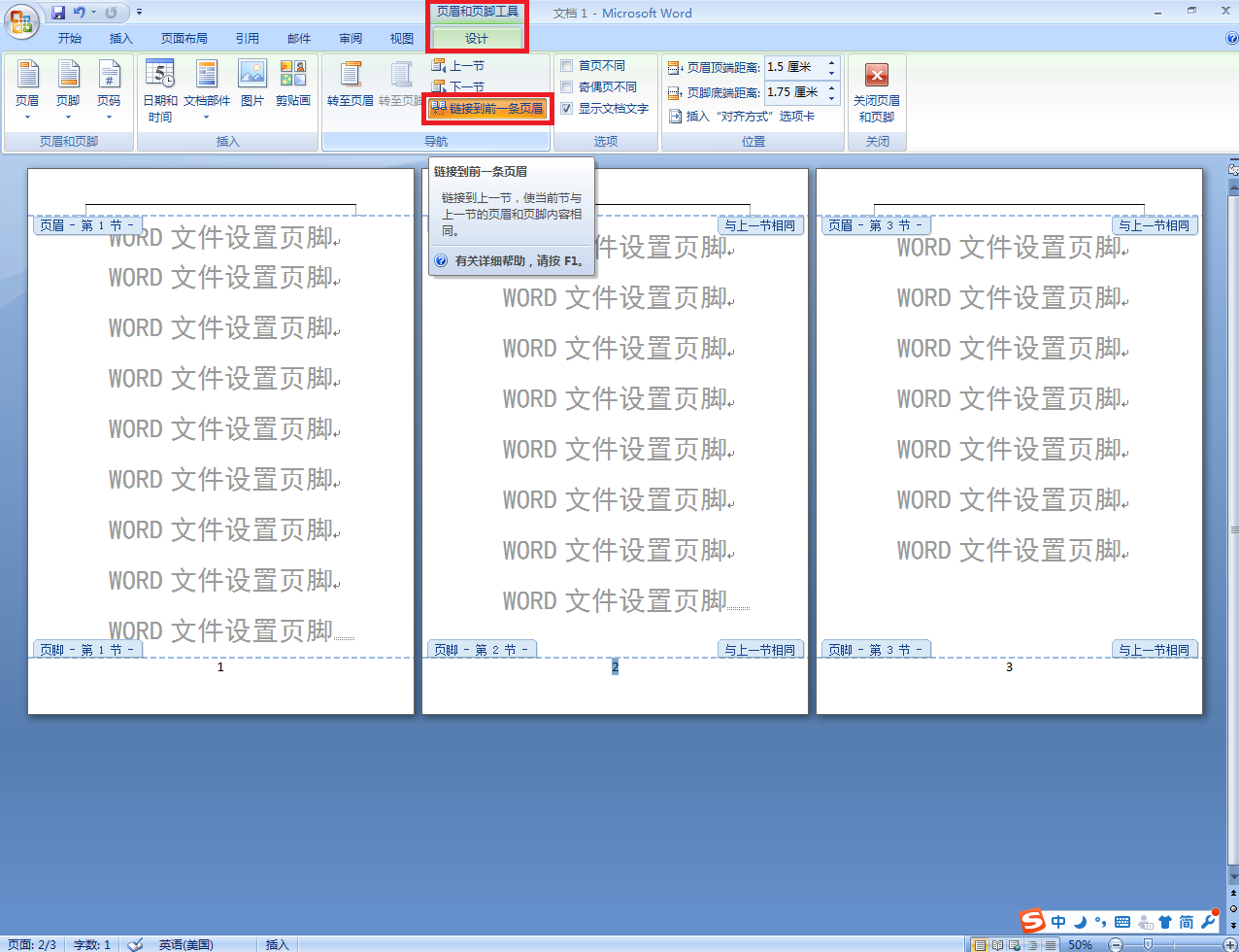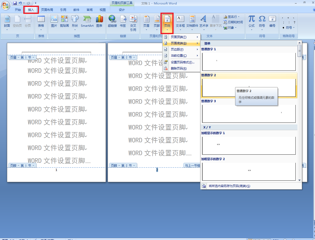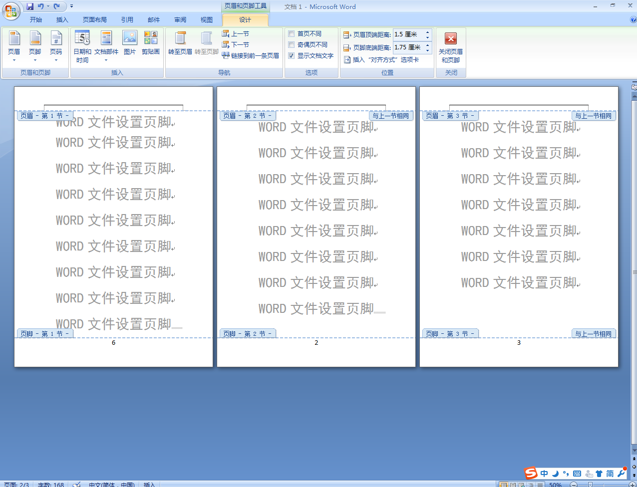 WORD文件设置页脚