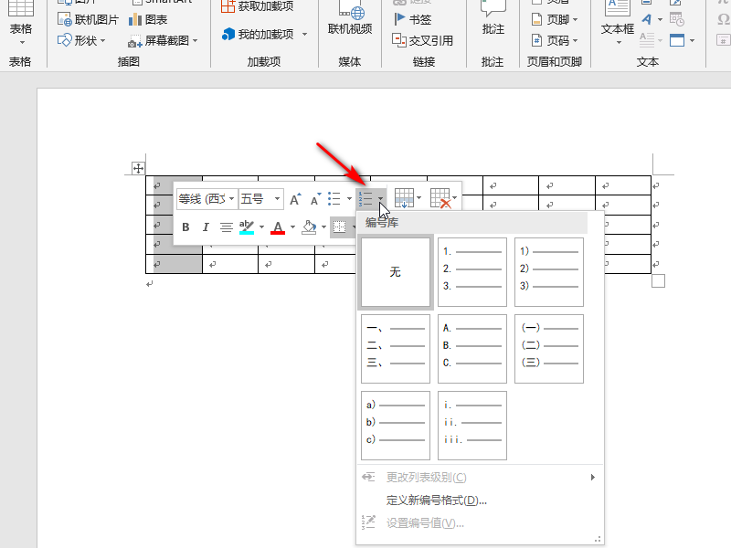 word表格怎么自动编序号的编号按钮在哪