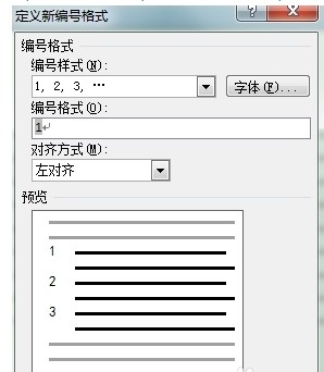 定义序号的格式:点击开始菜单下的“编号”图标右侧向下的箭头,再选择定义新编号的格式,在弹出对话框中的“编号格式”选项选择需要的格式,注意把编号后的“.”删除,然后点击确定按钮,完成序号格式定义。