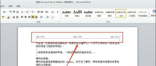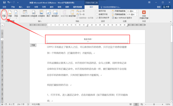 用鼠标双击页眉区域,使页眉成为焦点事件