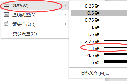 5、或者点击“轮廓”中的“线型”也可以更改线条的粗细。