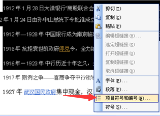 同样的,选中文字以后,也可以通过格式菜单里的“项目符号和编号”来设置。