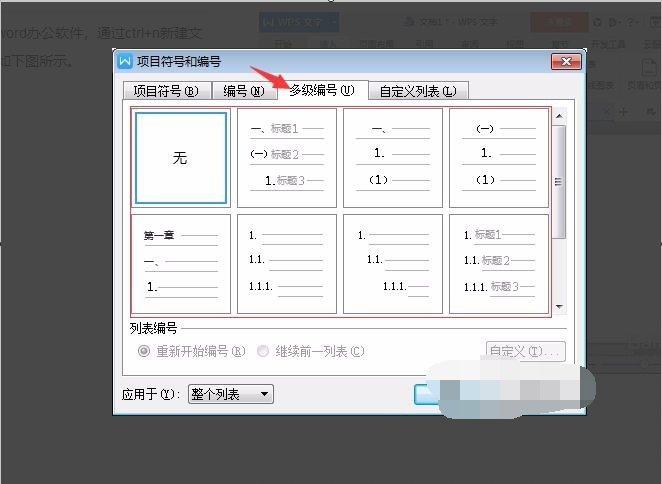 点击”编号“,在编号界面上可以点击上面任意一种编号样式;