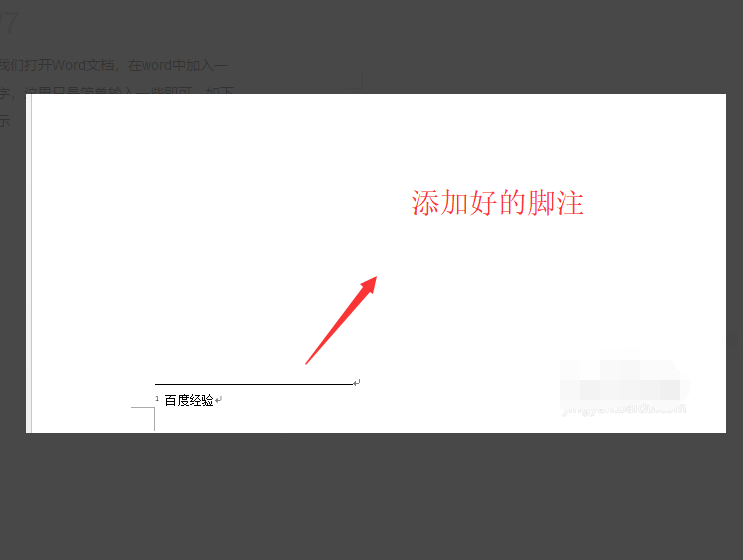 3、接着我们就可以在底部看到添加好的脚注,默认其编号是阿拉伯数字