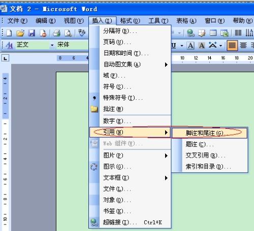 2、单击【插入】菜单中的【脚注和尾注】菜单项,出现【脚注和尾注】对话框。