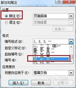 在“编号格式”框中,选择所需的格式类型。如果文档分为多个节,在“将更改应用于”下拉框中选择“本节”,将只更改本节的脚注格式;选择“整篇文档”,则会更改全文的脚注格式。