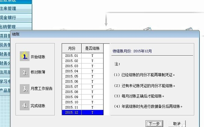 年结前一定要确保各个模块均已完成12月份的结账