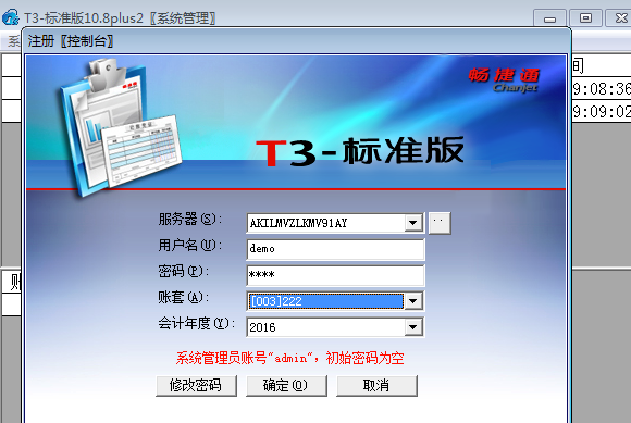 登陆系统管理,例如下图,会计年度为2010