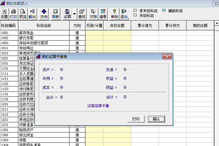 4.结转成功后在期初界面试算对账。
