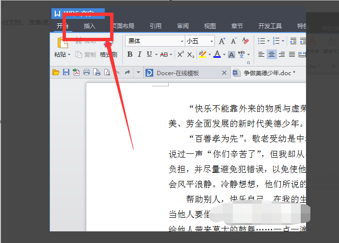 3、然后在页面上方找到“插入”选项,点击进去设置界面;