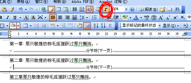 我的版本是2003,如果你是2007以上的话,按键位置不一样,仔细找找,原理是一样的。公司电脑还有2003,没办法啊。。。怎么进行毕业论文word页面排版