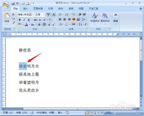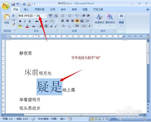 2、按住鼠标左键不放,拖动鼠标选择要加大字体的字,被选择的字会变成灰底。