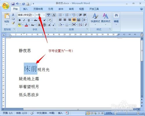 2、然后使用Ctrl+]快捷键调节,每按动一次Ctrl+],字体将增大1磅。按住不放可实现连续调节字体大小,直至所需要的大小。