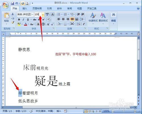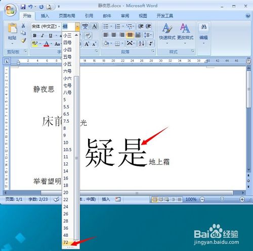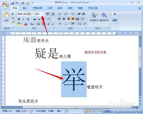 6、键入数字后,按回车键,字体就会变大了。了解这个方法后,就可以根据实际的需要键入合适的数值使字体变成需要的大小。