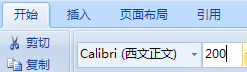 2、选择开始选项卡,在字号处输入所需要的磅值,如输入200并回车即可,如图所示;