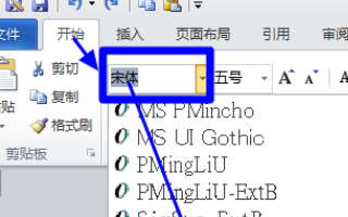 3、在菜单栏“开始”选项卡中的字体选择框内点击鼠标,选择一个比较粗的字体,这样字体放大后会更显眼一些。当然,也可以略过这一步,直接采用默认的字体。