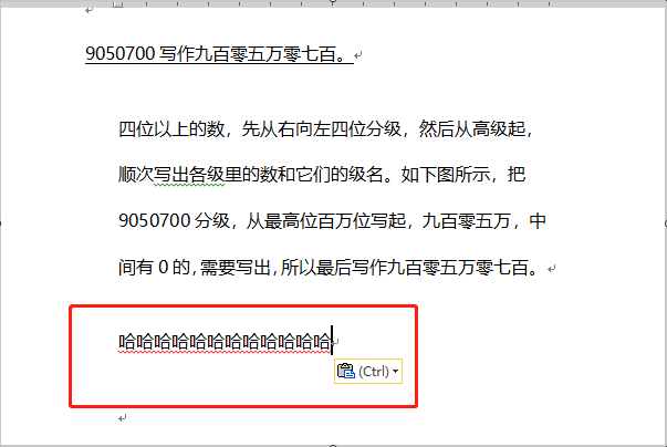 3、最后在要移动到的位置按Ctrl+V键进行复制,则可看到所选的文字全都移动到这个位置了。