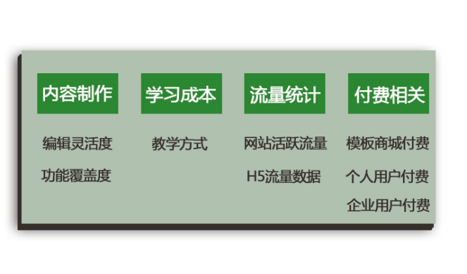 让用户最头疼的莫过于H5页面制作软件的收费问题,明摆着一个功能,却需要付费才能使用,这是最纳闷的。以下针对个人和企业两种用户,将付费相关的评测分为三个方向——