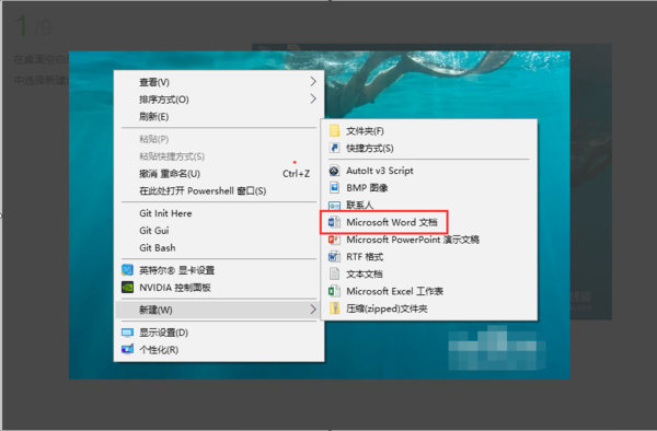 1、在桌面空白处点击鼠标右键,在弹出的菜单中选择新建选项