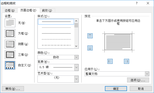 第一步,先在菜单→页面布局→页面边框,然后在对话框中,点自定义,
