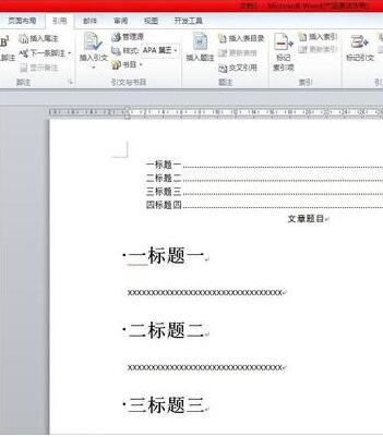 word2010为文档创建目录,可使用“引用”插入目录,由系统自动生成目录。