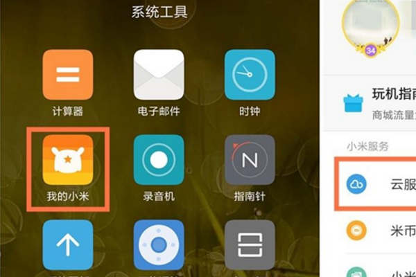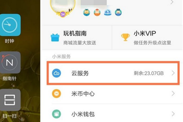 2、进入我的小米主界面后,在界面内找到并点击“云服务”选项。