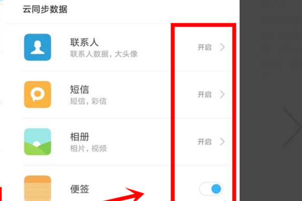 3、在云服务界面内开启云数据同步功能即可让安卓手机备份软件时同时备份数据。