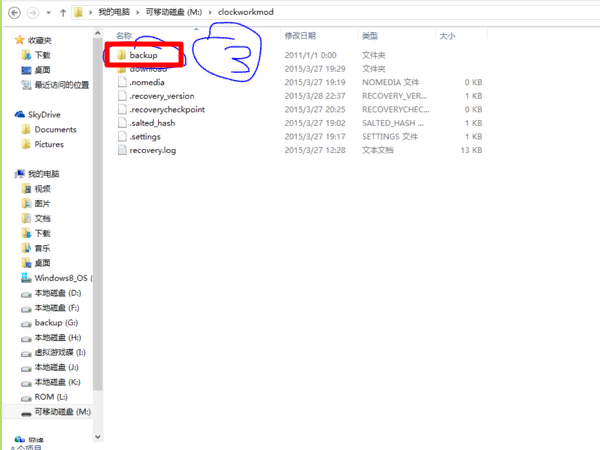 3、打开“backup”文件夹。