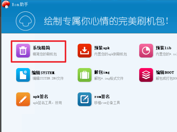 6、打开“ROM助手”,点击“系统精简”。