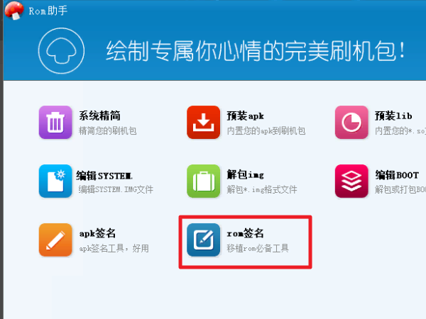 9、返回“Rom助手”,点击“rom签名”。