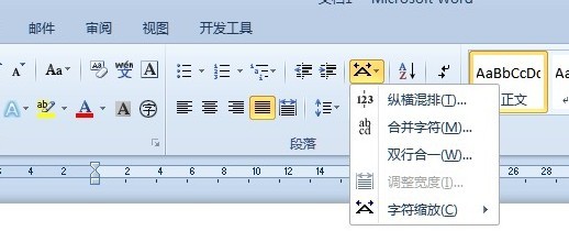 2010版office办公软件word中 双行合一在哪里了