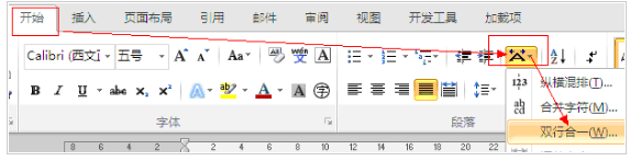 2010版office办公软件word中 双行合一在哪里了?找不着。