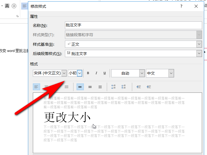 怎么改变word里批注的文字的大小?