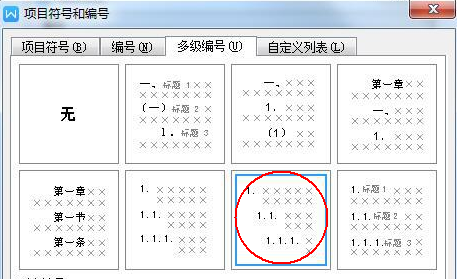 ② 在“多级符号”选项卡下选择式样;