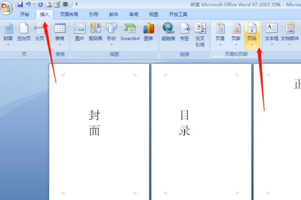 2、点击菜单栏的“插入”选项下的“页码”选项。