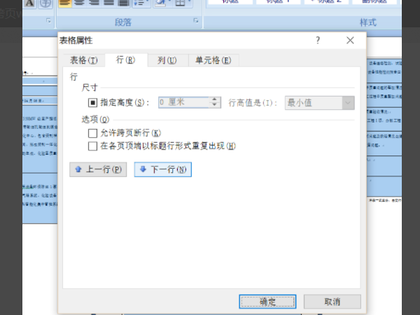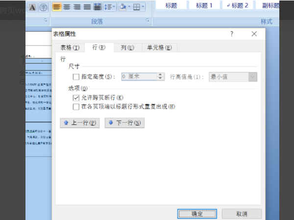 3、接下来把指定高度前面的勾去掉,并且把允许跨页断行的勾选上。