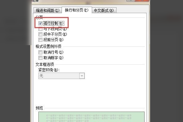 5、如果上述方法不起作用,请使用调整换行和分页的方法,选择空行 - 右键 - 段 - 换行和分页 - 检查孤立控件,其他不检查。
