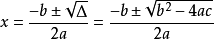 x=[-b±√(b^2-4ac)]/2a.