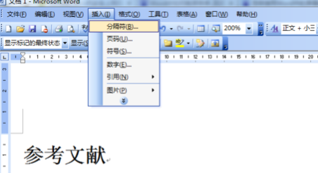在word2003中如何插入分节符