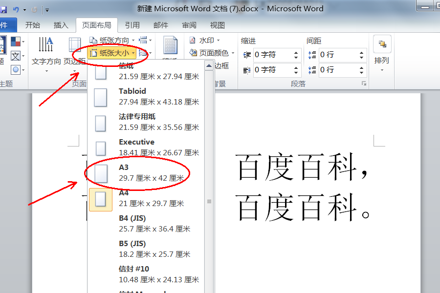 1、word2010有时选择页面纸张大小时会发现没有A3的选项。