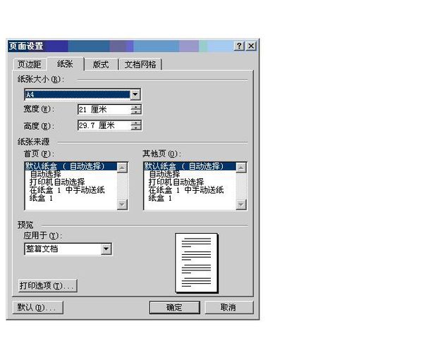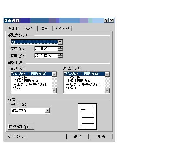 4、在“纸张”选项卡中可以看出,该打印机不支持A3纸张打印,所以word2010中不能选择A3大小。