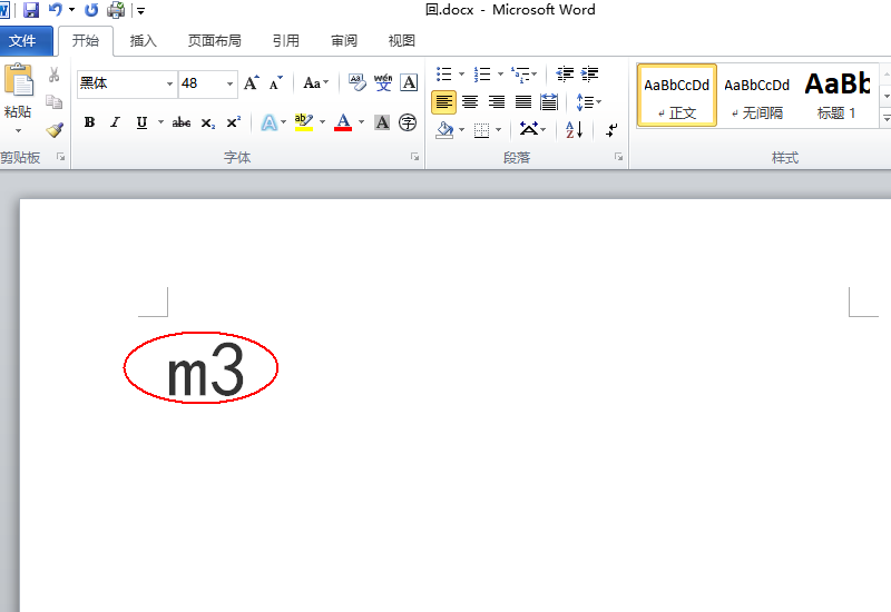 5、返回主文档,发现已成功输入立方米的符号“m³”。