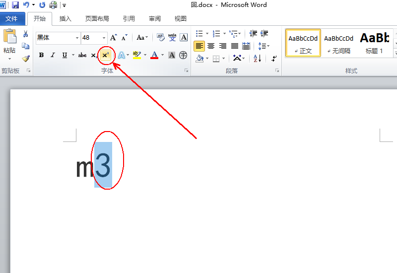 2、使用Word的上标功能,即首先输入m3,然后选中3,点击开始选项卡中的上标图标(X2),也可以选中3后,点击鼠标右键,然后选择“字体”选项,然后勾选“上标”选项即可。