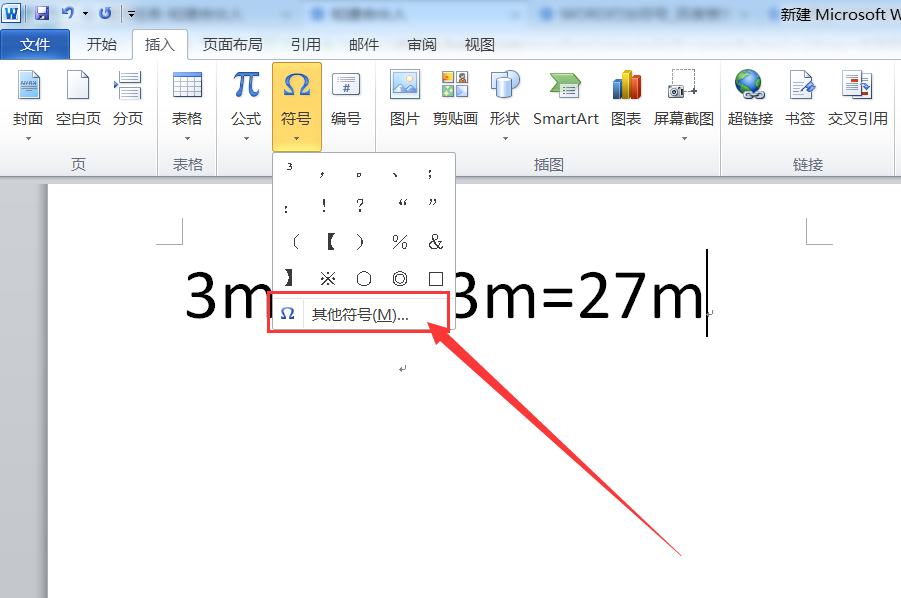 3、在“符号”的弹出下拉菜单中选择“其他符号”。