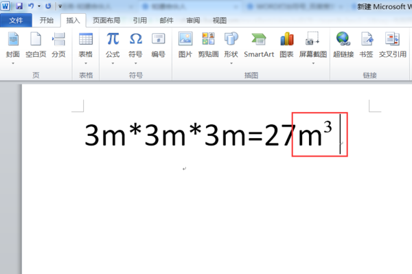 3、返回主文档,发现已成功在WORD中输入立方米符号。