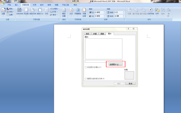 2.在出现的选项中选择“填充效果”。并在稍后出现的填充效果页面中选择“图片”,并点击。