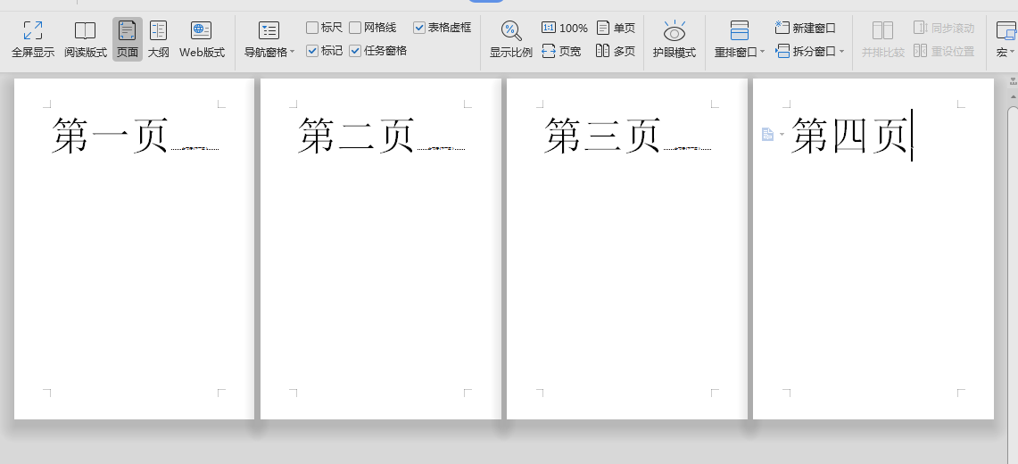 1、将光标定位在第4页最后一行最后一个字的后面。